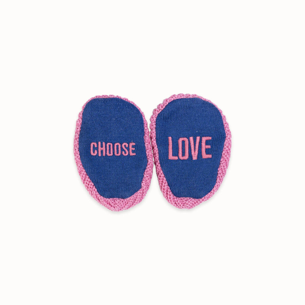 Choose love ! Ces adorables petits chaussons Sophie Home tricotés dans une jolie gamme de couleur portent un message très important qui concerne tout le monde, une devise pour la vie et qui nous tient à cœur. Nous reversons 5 % de nos bénéfices à Choose Love, une association caritative qui soutient les personnes dans leurs moments les plus difficiles.