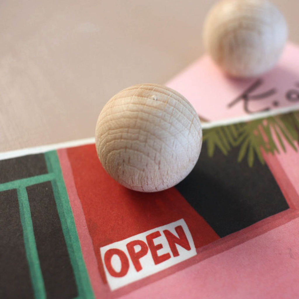 Exit les magnets as-been sur le frigidaire ! Cette boule en bois de chez Tout Simplement peut supporter jusqu’à 12 feuilles A4 et se fixer sur n’importe quel support métallique.