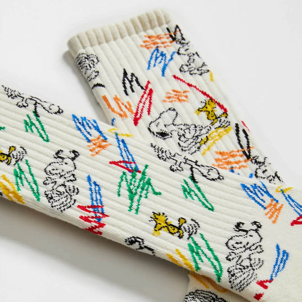 Adoptez un style urbain plein de caractère avec ces chaussettes Besocks blanches ornées d’un motif street art de Snoopy. Conçues en coton bio, elles combinent confort premium, design original et engagement durable — l’accessoire essentiel pour un look casual irréprochable.