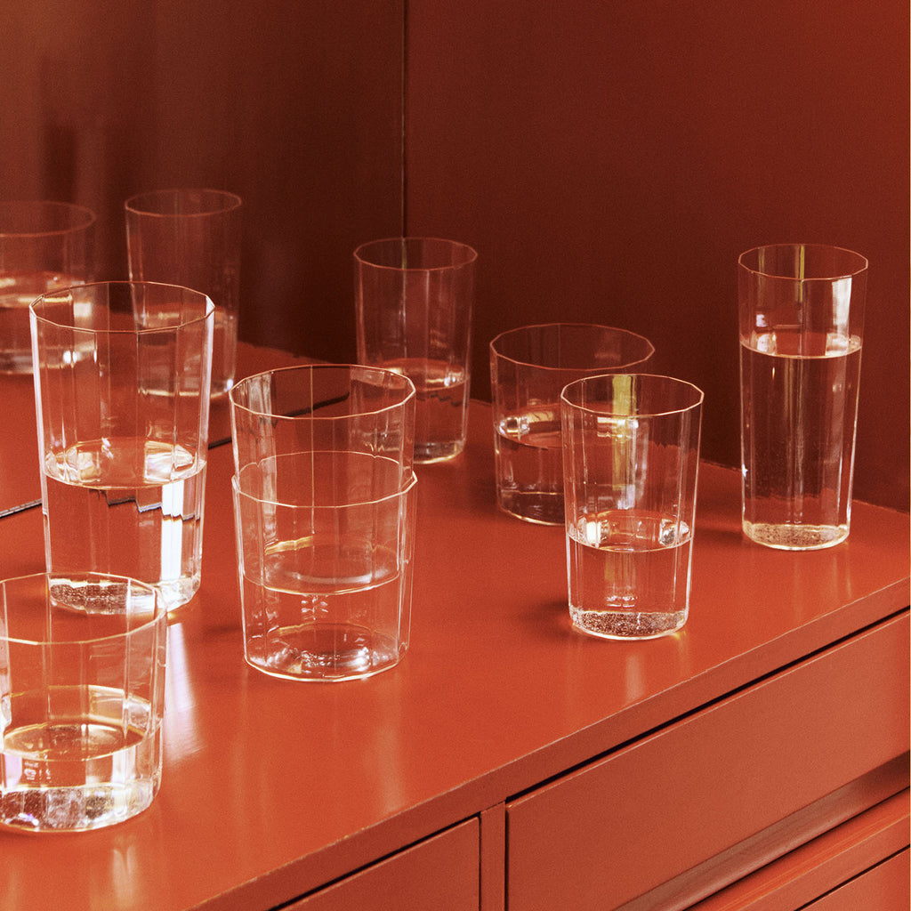 Les verre Angle de chez Hay sont fabriqué à la main en verre cristallin fin avec des côtés à facettes. Leur design, à la fois simple et élégant les rendent parfait pour une utilisation quotidienne. Ils seront également très raffinés pour des occasions spéciales, tout en légèreté et transparence.