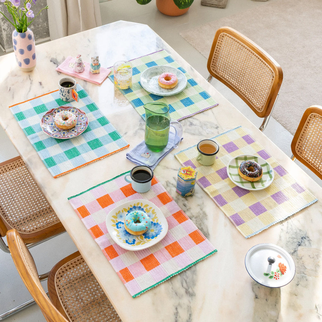 Pour une table apaisante et stylée, optez pour le set de table Tarta Gélatina en teinte Matcha. Un vert doux mixé avec un bleu pep's et une touche de lilas apporteront de l'originalité et de la couleur à votre table.