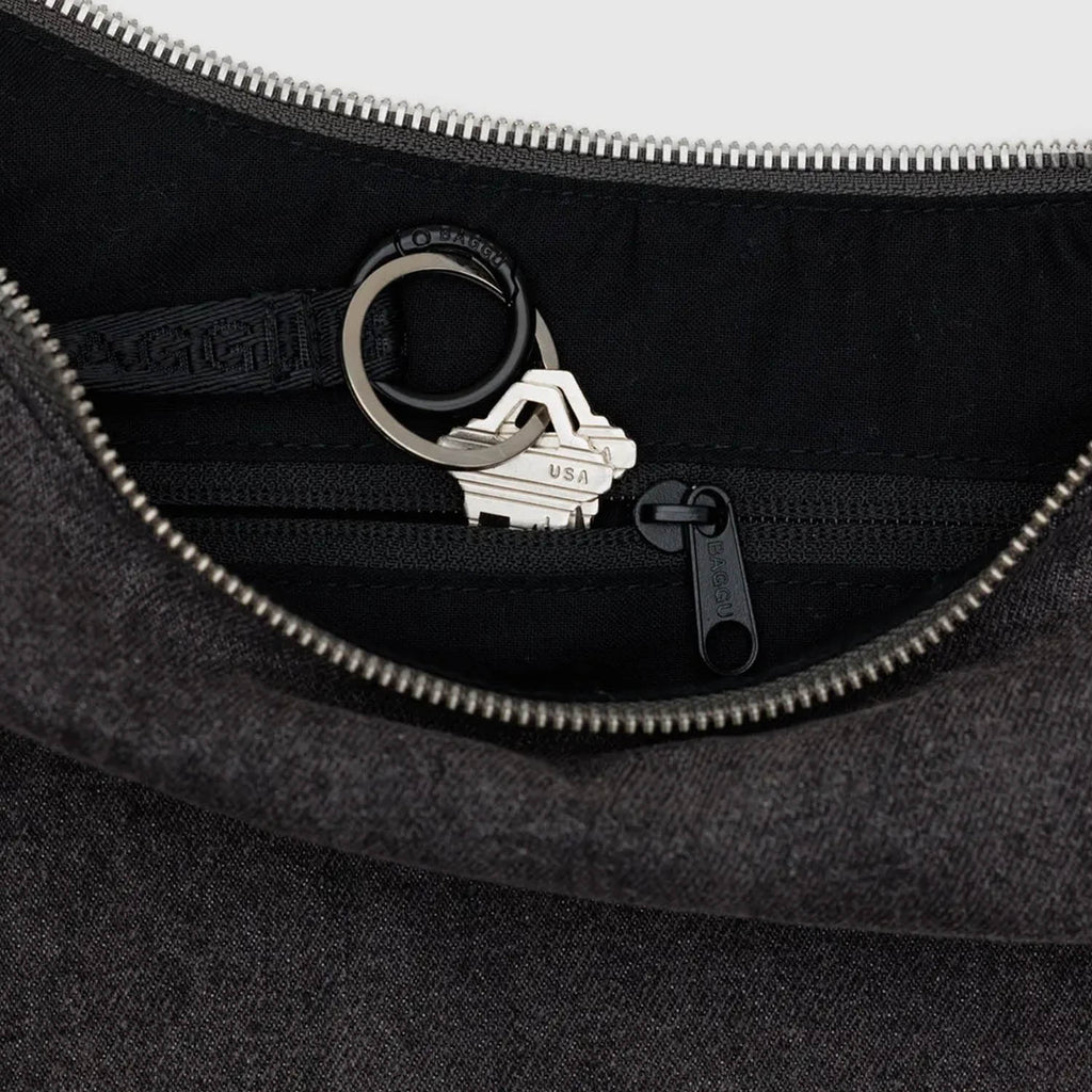 Le pratique ne doit pas nécessairement être ennuyeux ! Le "cressant bag" de chez Baggu est décontracté et suffisamment grand pour transporter plus que l'essentiel. Portez-le à l'épaule en bandoulière pour avoir les mains libres. La bandoulière réglable et les deux poches intérieures facilitent l'organisation et rendent le sac super pratique au quotidien.