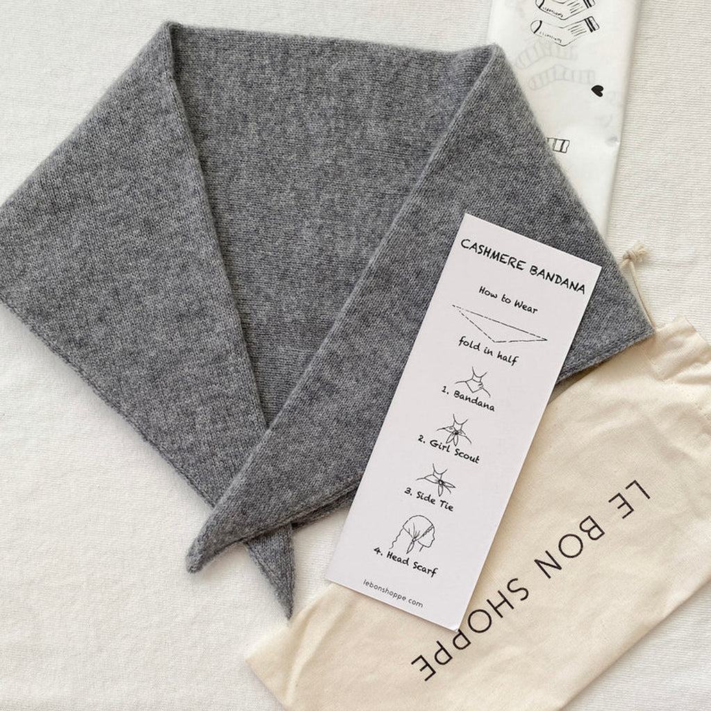 Minimaliste et raffiné, le bandana en cachemire gris Le Bon Shoppe est l’accessoire parfait pour rehausser vos tenues avec sobriété. Sa texture douce et chaude en cachemire et laine offre un confort incomparable, tandis que sa couleur neutre s’accorde facilement à tous les styles. À porter en foulard, en bandeau ou noué à un sac pour une allure élégante sans effort.
