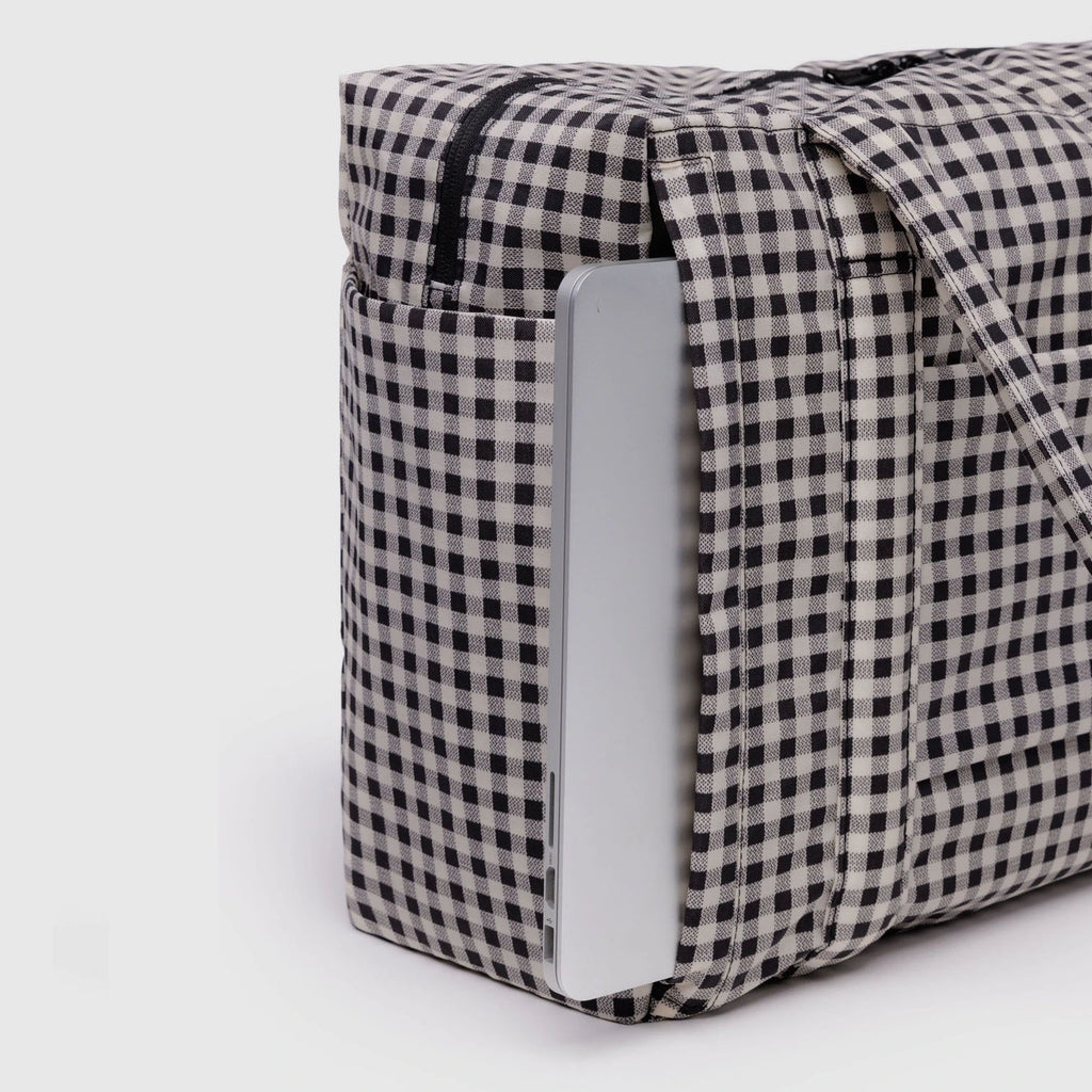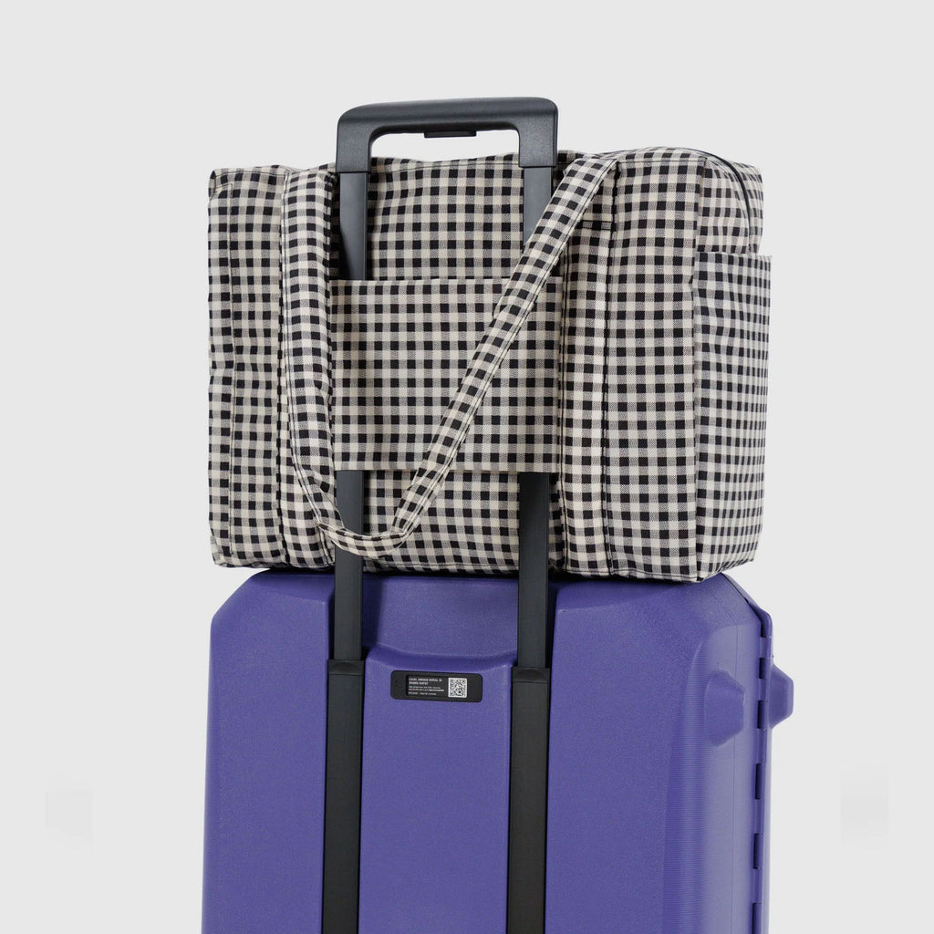 Ce sac Baggu sera votre compagnon idéal de voyage ! Il a été fabriqué en nylon recyclé, ce qui le rend très léger et robuste. Sa contenance est idéale pour un week-end ou en plus de votre valise pour les longs-courriers, il a les dimensions parfaites pour un sac cabine. Il a deux poche extérieures et une pochette intérieure amovible dans laquelle vous pourrez ranger le sac plié. Emmenez-le en voyage ou laissez-le vous emmener en voyage!