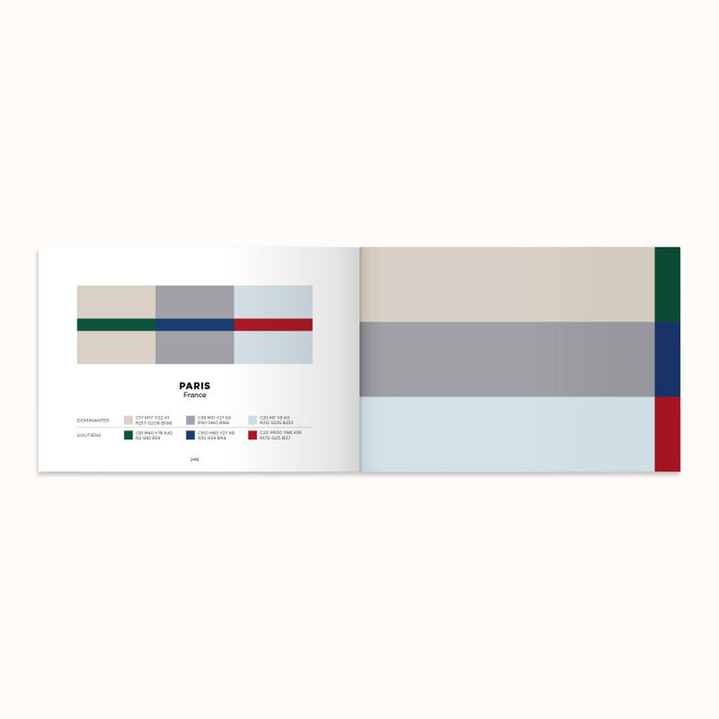 Ce livre de 340 pages vous propose 450 combinaisons de couleurs inspirées par 150 destinations, incontournables ou improbables. Les talents du studio Papier Tigre ont retenu une heureuse combinaison de couleurs par destination pour vous inspirer.