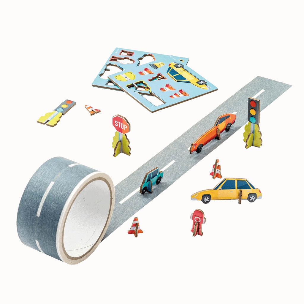 Ce ruban créatif transforme le sol, les meubles ou les murs en une vraie autoroute miniature — parfaite pour les jeux d’enfants, les idées déco originales ou même pour imaginer votre propre ville à la maison. Il est accompagné de petits élements pour jouer (voiture, feux, panneaux ..)